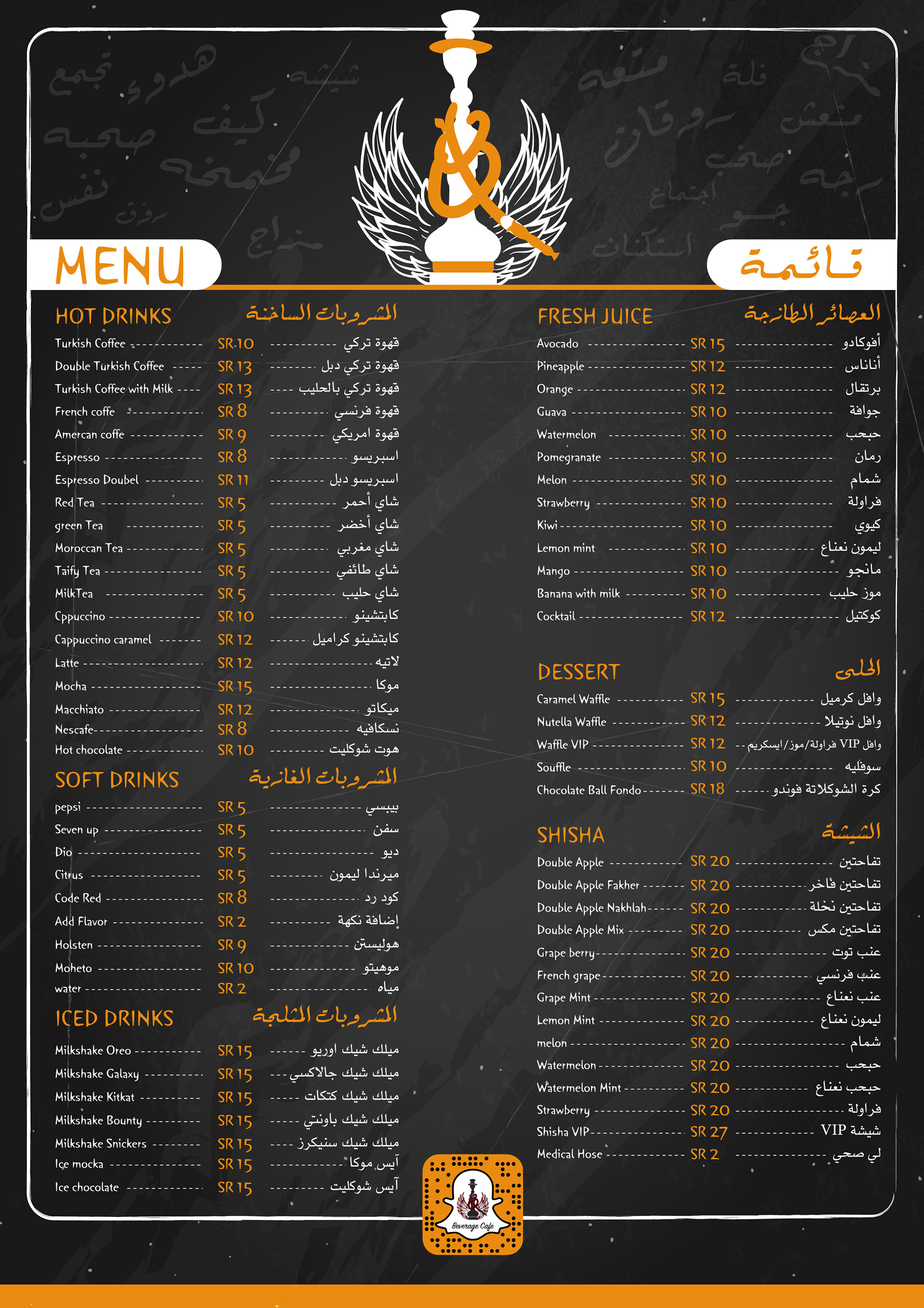 Beverage menu
